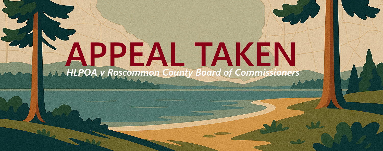September 14, 2025 - An emergency appeal has been made to the Michigan Court of Appeals for the alleged constitutionally defective notices regarding the recent Higgins Lake special assessments.